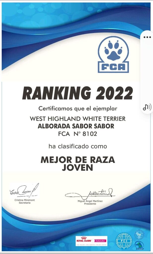 Mejor Joven de Raza Ranking 2022 Federacion Cinologica Argentina
