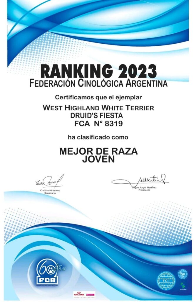 Mejor Joven de Raza Ranking 2023 Federacion Cinologica Argentina